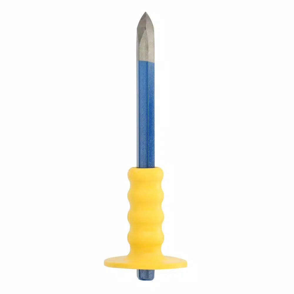 The Dasco Pro 3/4 in. x 12 in. Concrete Chisel is designed to break up concrete floors, sidewalks and paving slabs when an air hammer would be impractical. The target guard provides protection for your hand from glancing blows and missed hits. Meets or exceeds ANSI standards. Made in the USA.