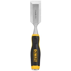 The DEWALT 1-1/2 in. wood chisel is designed with the professional in mind. The handle is ergonomically constructed for comfort, with a durable metal cap for striking and driving the chisel blade. The carbon steel blade is tempered and hardened to ensure a long-lasting edge, and lacquered to protect against corrosion.