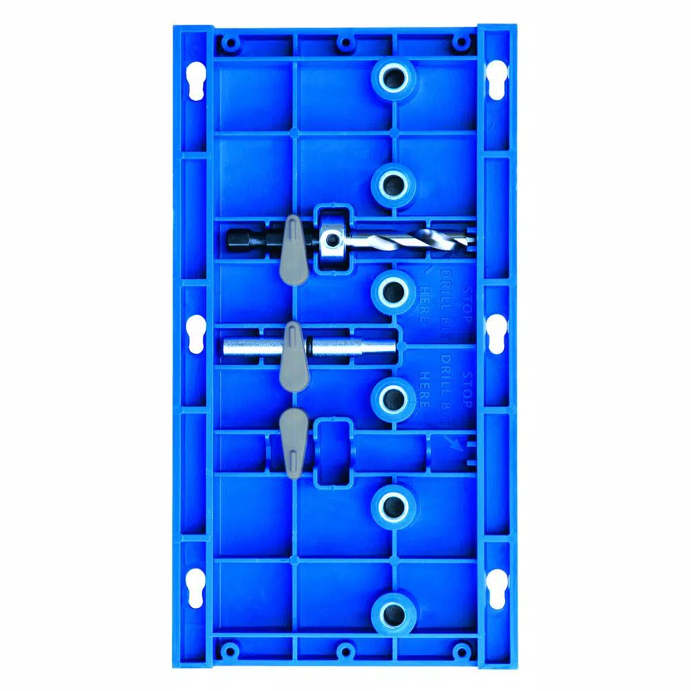 - 6 hardened-steel drill guides allow perfectly vertical holes for wobble-free shelf placement