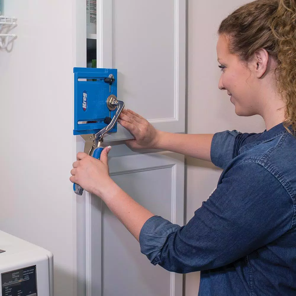 The Kreg Cabinet Hardware Jig takes the guesswork out of installing cabinet knobs and pulls. The moveable edge guide and measuring scales make it easy to position knobs precisely, while adjustable drill guides ensure straight holes for perfect knob and pull positioning every time. Perfect for new construction and for refreshing entire rooms. Whether you are updating your cabinets or building a project from scratch, adding hardware like knobs and pulls is often 1 of the final steps and 1 of the most intimidating. The Cabinet Hardware Jig features moveable, hardened-steel drill guides that lock in place to align with common hole-spacing measurements for cabinet knobs and pulls. This allows you to confidently drill straight, accurately positioned holes. A moveable edge guide and built-in measuring scales (in imperial and metric) ensure that those holes will be positioned where you want it every time, which means you can drill as many holes as you need without the uncertainty and potential mistakes that can come with measuring and marking everyone. The Cabinet Hardware Jig is designed to be intuitive for beginners to use, but robust enough for professionals. All you need is a drill and a 3/16 in. bit and the ability to set the jig to match your hardware and the position where you want it to go. NOTE: 3/16 in. (5 mm) drill bit required – does not come included.