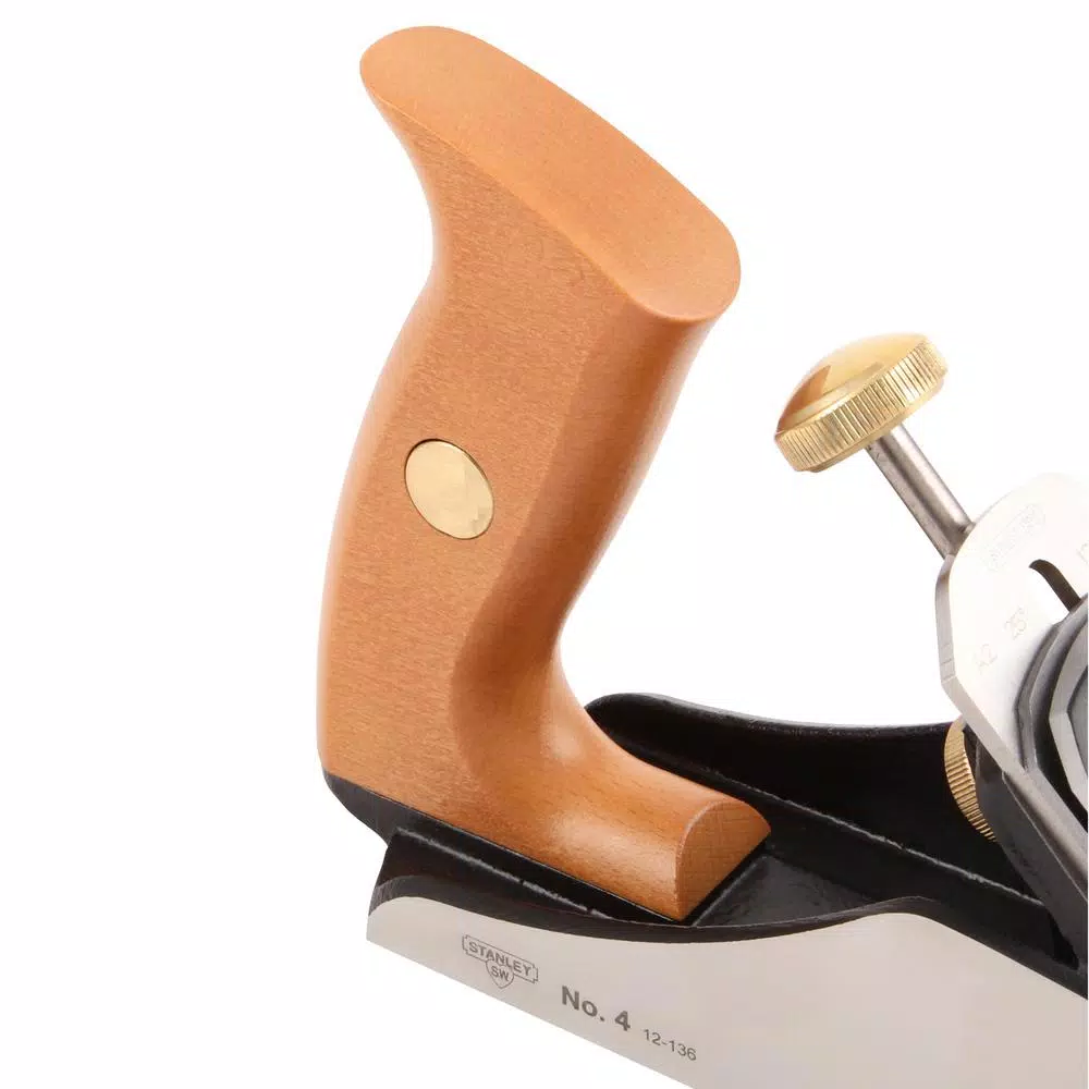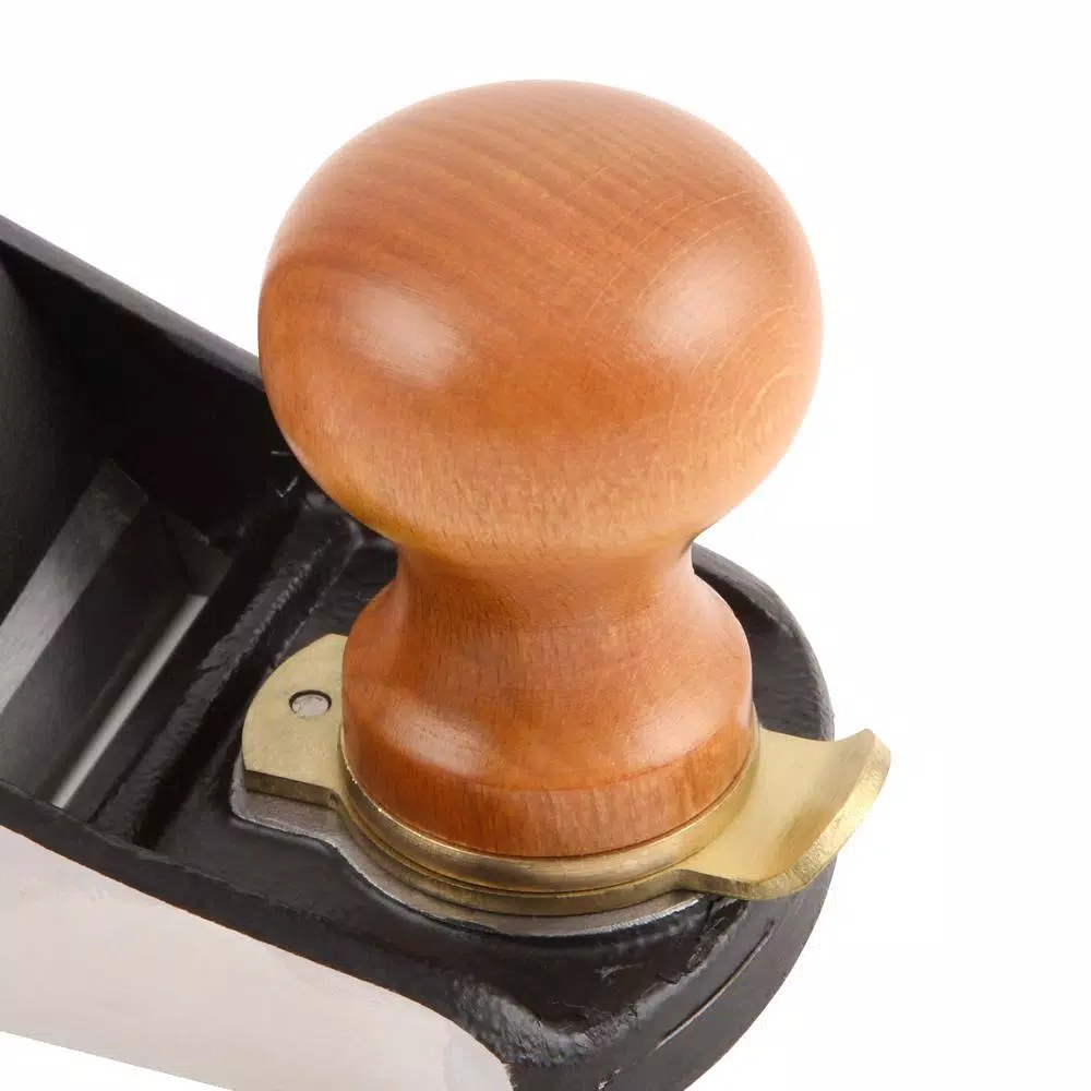 The plane is made for Iron that is 1/8 in. thick. The base is constructed from one piece of Iron. Cherry wood is used to make the handle and knob for comfort. The throat plate adjusts for various types of wood.