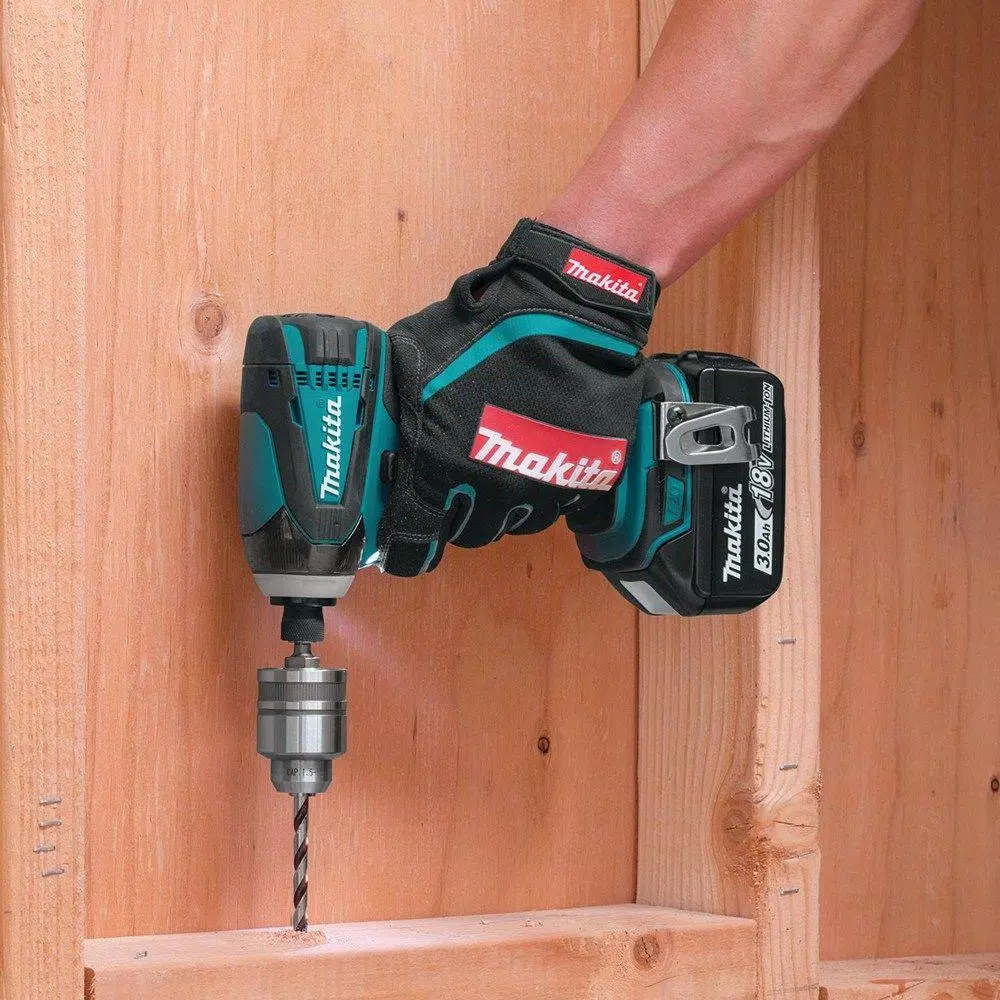 The Makita 3/8 in. Metal Impact Driver Keyless Chuck is a drill attachment that is made from metal. This chuck can convert an impact driver into a driver drill. It accepts round and hex shank bits.