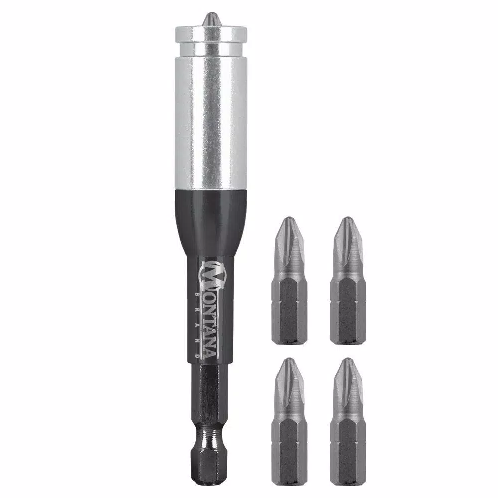 The Montana Brand 2-in-1 Drywall Screw Setter provides double duty functions for speed and convenience. This modular driver accessory works as a drywall screw setter (dimpler) and 3 in. magnetic bit holder. Driver bit replacement is simple, easy and less costly than conventional drywall dimpler bits. Set includes: (1) 2-in-1 Combination Magnetic Bit Holder and Screw Setter. (5) 1 in. Drywall Driver Bits.