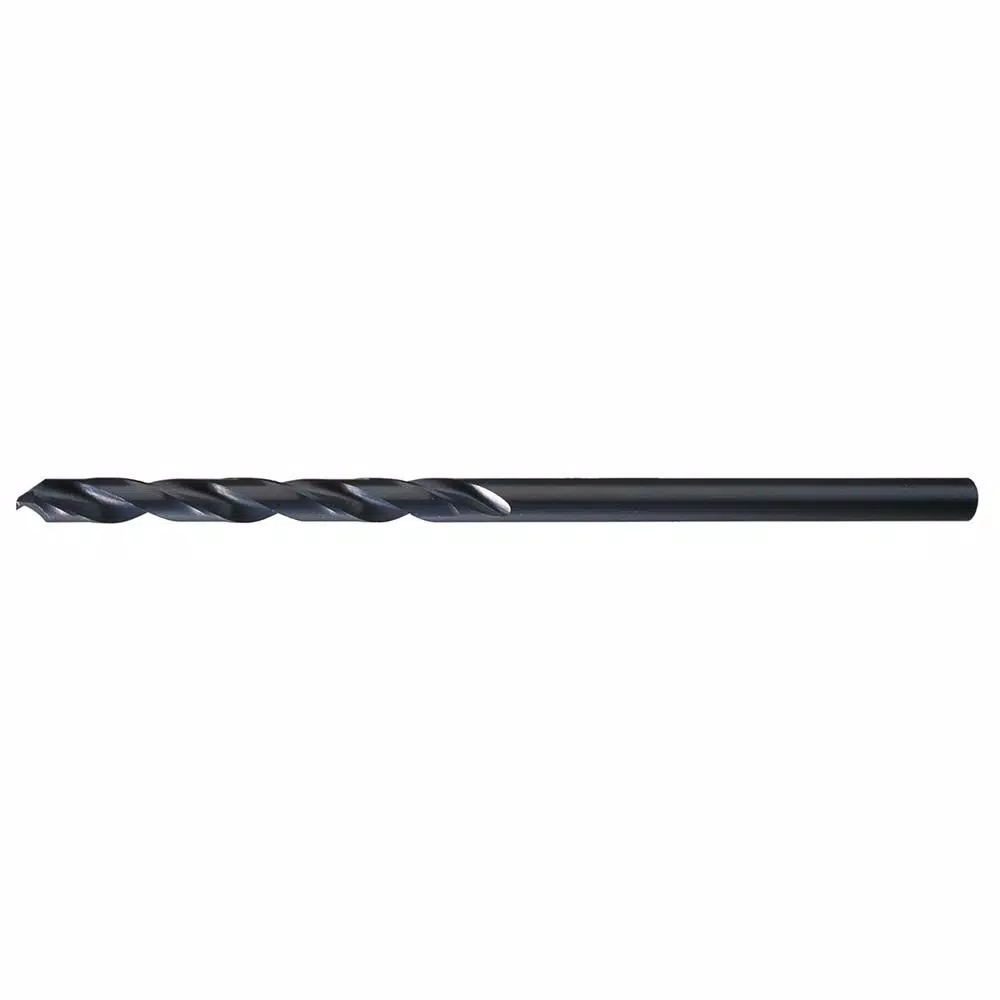 This High Speed Steel Aircraft Extension Drill is designed for drilling 6 in. extra reach applications in carbon, alloy and cast iron steels. The drill features a 135-degree split point designed to prevent work-piece walking, precision grinding to tight tolerances and superior rigidity for hand and machine drilling. A black oxide finish on premium high speed steel enables the drills to run cooler with increased lubricity and longevity.