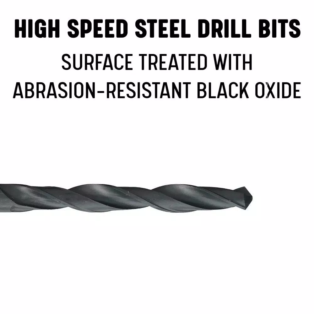 Drill America High Speed Steel Aircraft Extension Drills are good for most general purpose applications. These drill bits offer a combination of hardness and toughness for wear resistance. Black oxide treatment adds lubricity and creates small pockets on the surface of the tool that act to hold coolant near the cutting edge. Extra-long for when extra reach is required.