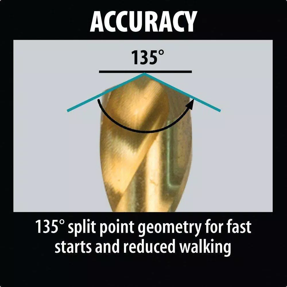 The Makita Hex Shank Titanium Coated Bits are designed for use drilling holes with impact drivers or driver-drills. These bits feature a 135° split point for faster more accurate starts in a variety of material. Each bit is made from high speed steel and coated with titanium nitride for added durability and a long life.