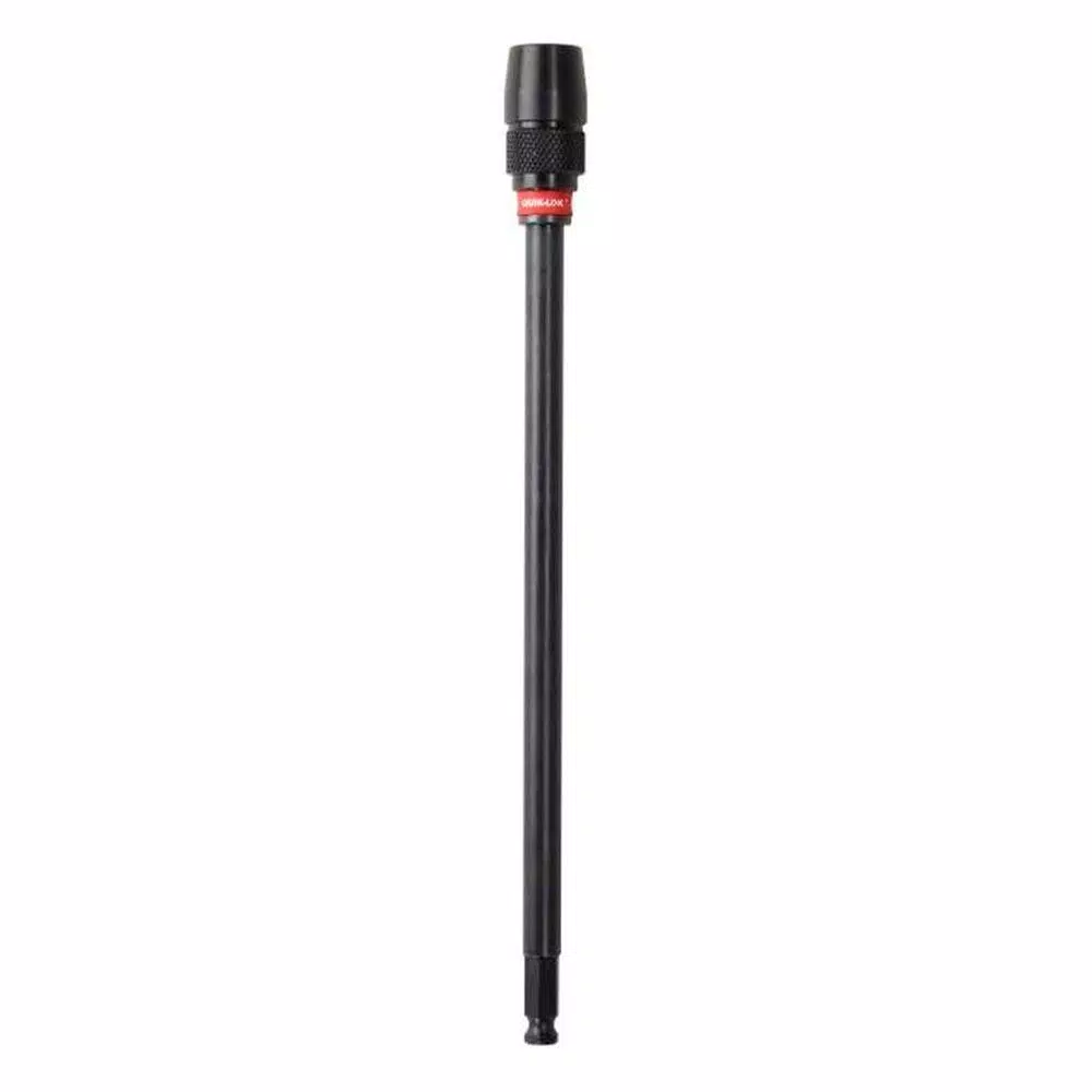 The Milwaukee QUIK-LOK 12 in. x 7/16 in. Universal Extension Bit is compatible with most 7/16 in. shanks, with or without a power-groove. It requires no tools to change out bits, making it fast and efficient. Accepts most 7/16 in. shanks, with or without a power-groove.