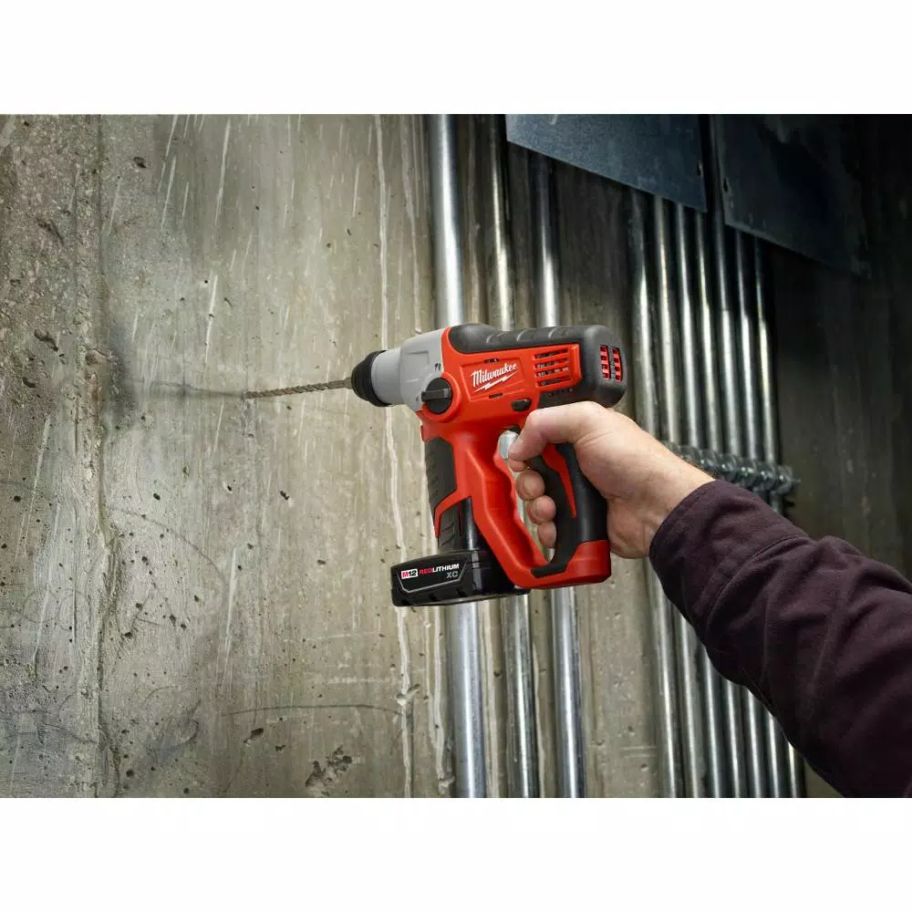 Milwaukee M/2 2-Cutter SDS-Plus Rotary Hammer Drill bits provide up to 30% faster drilling speeds and up to 20% more holes per charge in cordless rotary hammers. Breaker Point pulverize the material more effectively resulting in up 30% faster drilling speeds compared to competitive SDS-Plus drill bits. The variable flute allows for maximum debris extraction leading to up 20% more holes per charge in cordless rotary hammer while making it a very durable bit in corded and cordless rotary hammers. The enhanced rebar guards provide increased durability in hard aggregate and rebar. Additionally, M/2 features a centering tip for exact spot drilling, wear mark indicator indicating when the bit no longer meets ANSI diameter requirements, and a reinforced flute for durability and minimized vibration. The increased life and efficiency of the M/2 2-Cutter drill bit line provides the ideal solution in brick, block, and concrete for cordless and corded rotary hammer users.