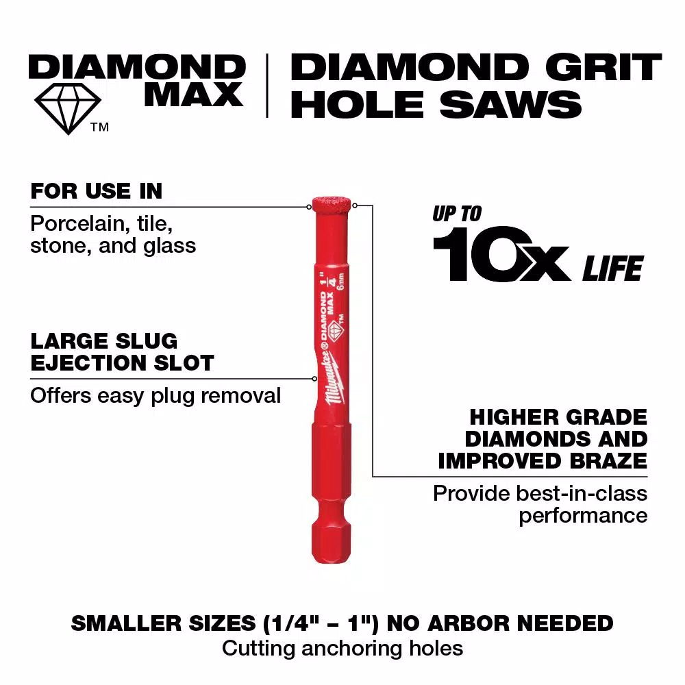 - Includes (1) 3/8″ Diamond MAX™ Hole Saw