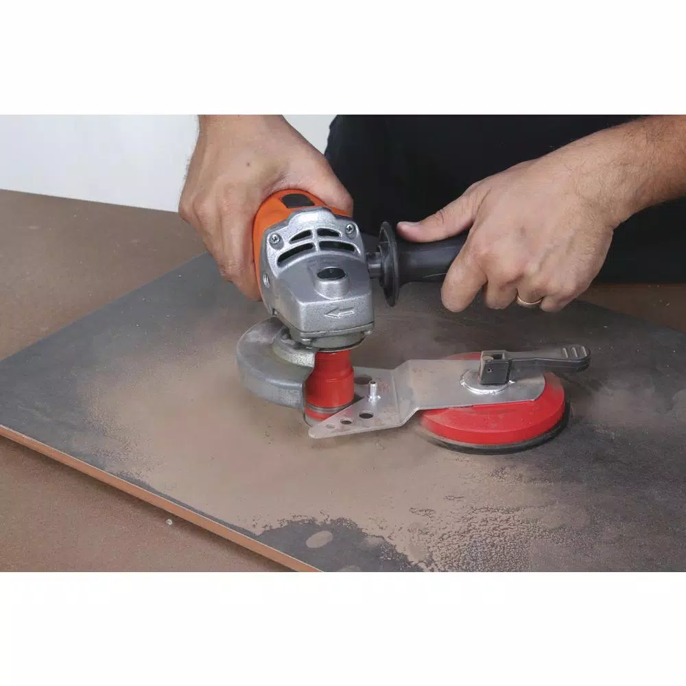 Dry Core Bit to drill porcelain, granite and marble 5/8 in. female arbor and fits on high-speed and variable speed angle grinders. Very fast cutting on granite and engineered stone. For drilling in dry wall, stoneware and porcelain tiles. Drill bit body made of highly resistant steel. Air cooling slots for increased cooling and core removal. Usable with grinder (direct connection) or electric drill.