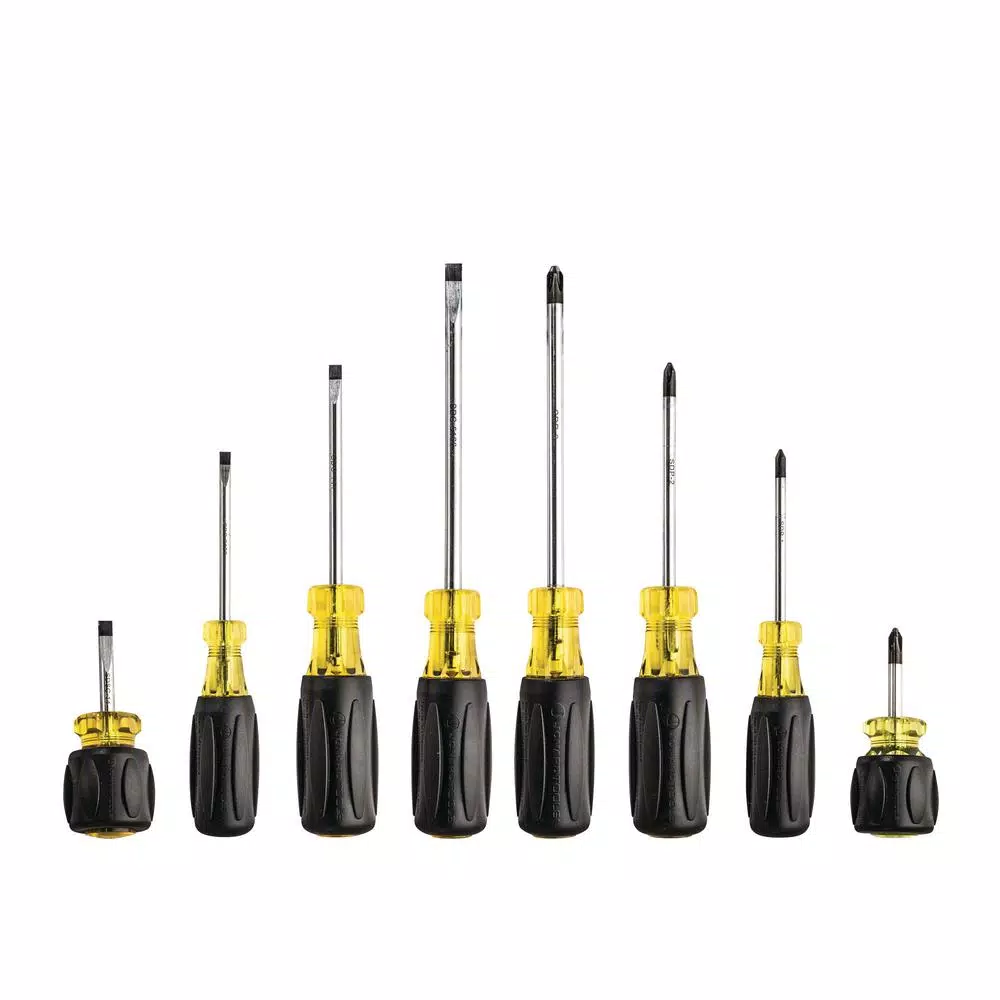 The Jonard Tools screwdrivers are made of special alloy steel for exceptional strength and long life. The shafts are corrosion resistant and the soft rubber handles offer user comfort with greater torque. The tips are magnetic and the size and style are marked on the end of each handle. Our screwdrivers meet applicable ASME/ANSI specifications. This 8-piece set includes: 1) SDSP-2 Phillips #2 Stubby Screwdriver, 2) SDP-1 Phillips #1 x 3 in. Screwdriver, 3) SDP-2 Phillips #2 x 4 in. Screwdriver, 4) SDP-3 Phillips #3 x 6 in. Screwdriver, 5) SDSC-14 Slotted 1/4 in. Stubby Screwdriver, 6) SDC-3163 Slotted 3/16 in. X 3 in. Screwdriver, 7) SDC-144 Slotted 1/4 in. X 4 in. Screwdriver, 8) SDC-5166 Slotted 5/16 in. X 6 in. Screwdriver