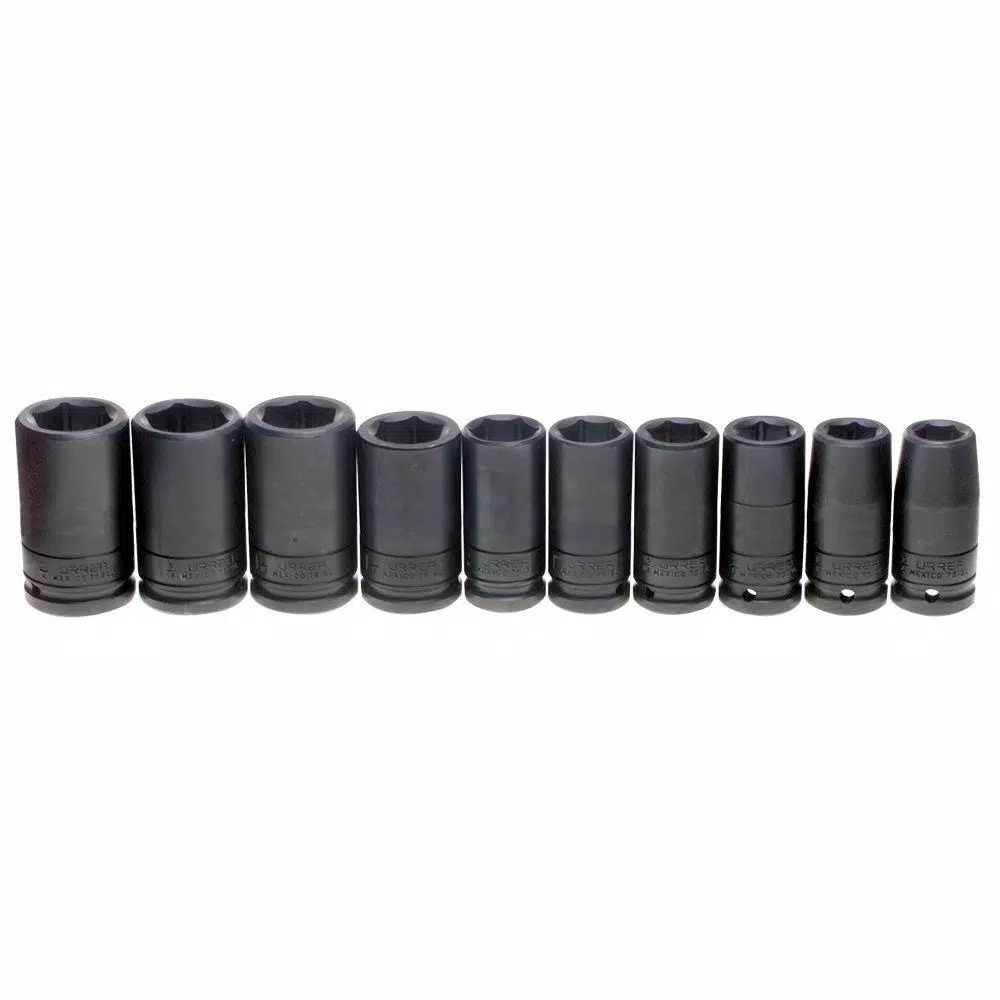The line of 3/4 inch impact sockets line is for heavy mechanical work such as truck or industrial plant maintenance. The application ranges are as follows: Socket hex sizes: 9/16 inch to 1-5/16 inch and 17-50 mm. Torque applications for sockets, handles, and accessories: 3700-18,000 in-lbs.