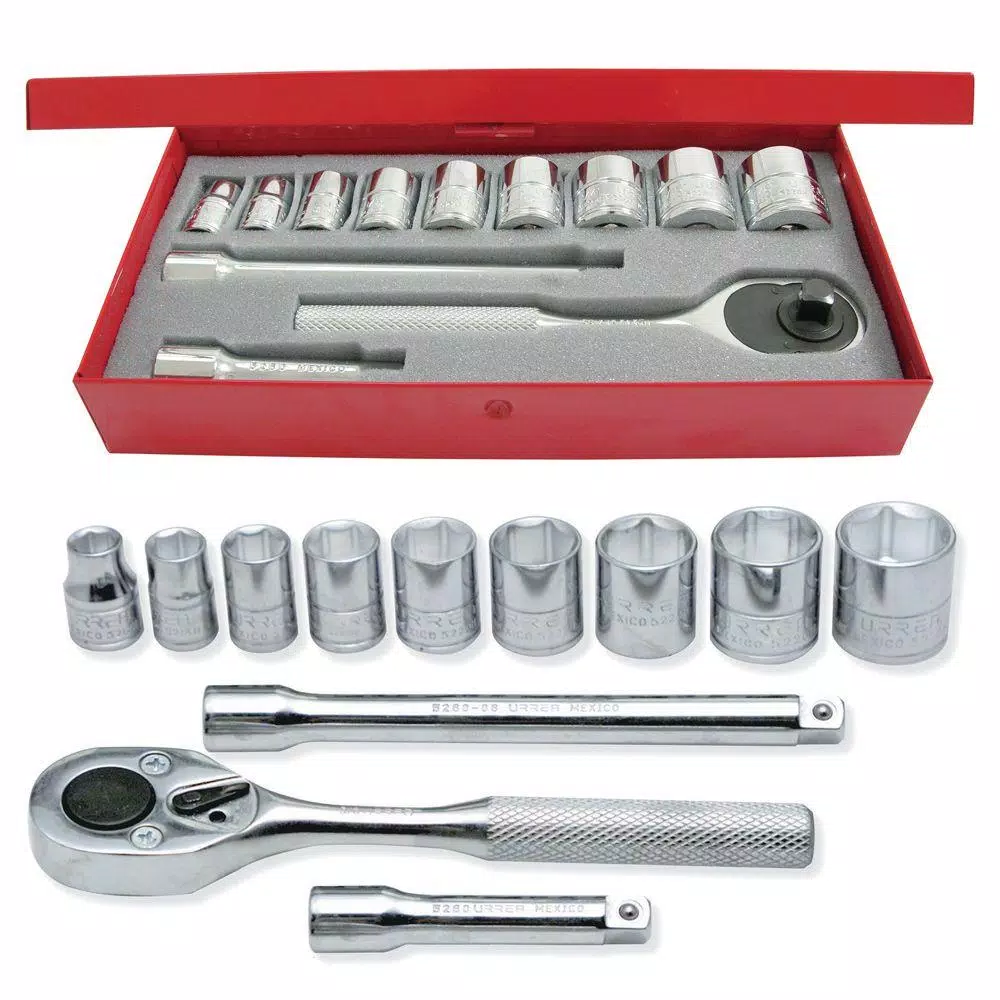 The 3/8 inch socket line, like the 1/2 inch line, is used primarily for automotive maintenance and general mechanical work. They can withstand higher torques and more work space is needed to use them, but they have broader application ranges. Socket hex sizes: 1/4 inch to 1 inch and 6-26 mm. Torque applications for sockets, handles, and accessories: 270-2200 in-lbs.