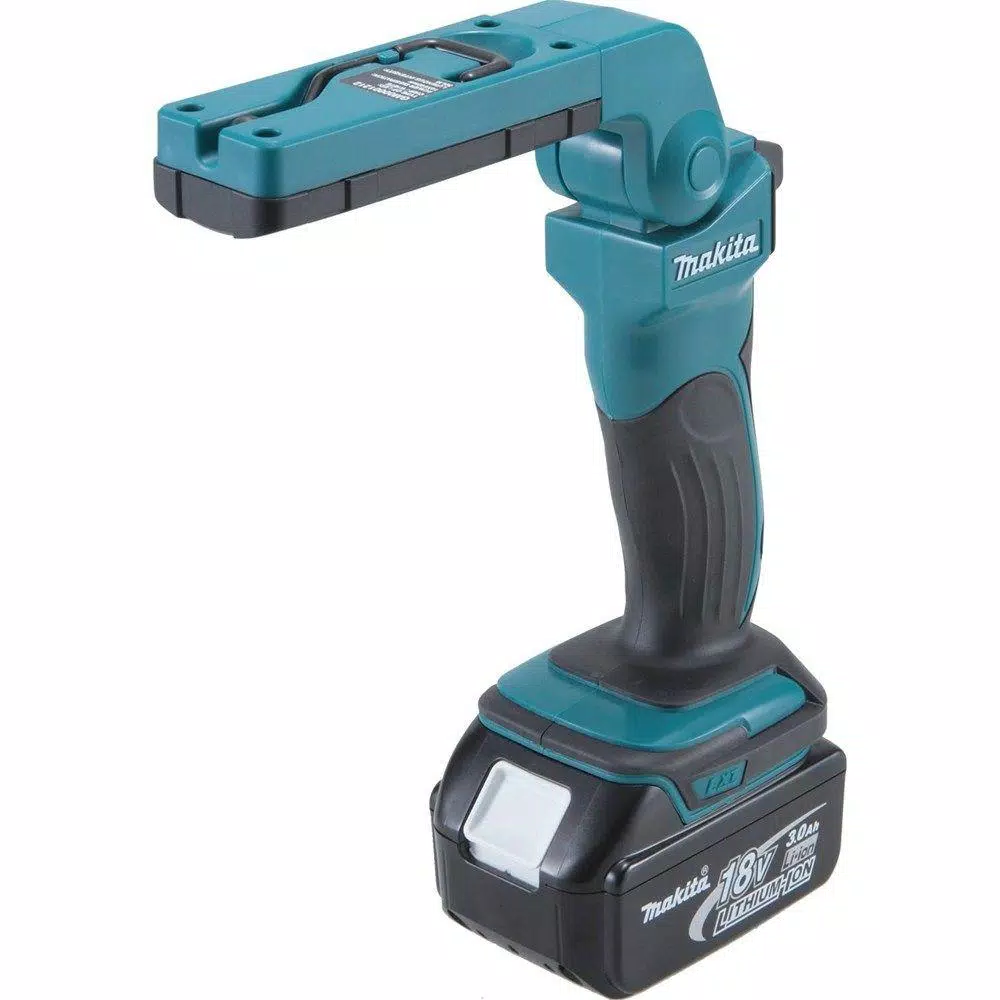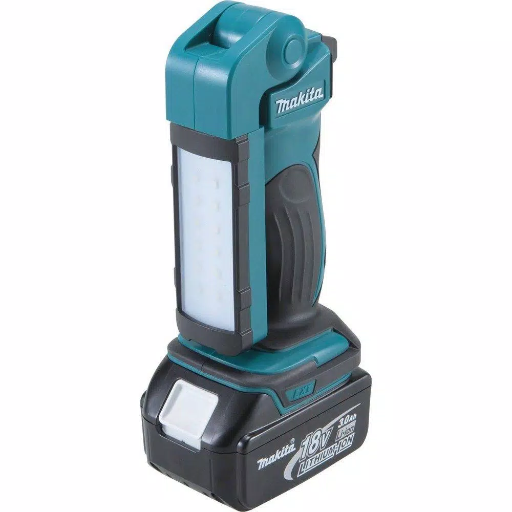 The 18-Volt LXT Lithium-Ion Cordless 12 LED Flashlight (model DML801) provides ultra-bright illumination, versatility and convenience. At full brightness (12 LED), it provides 240 Lumens of light. The 2-mode switch also provides a half-brightness setting with 6 LED (120 Lumens). When using the fast-charging 18-Volt LXT Lithium-Ion 3.0 Ah battery (sold separately), the flashlight delivers 12-hours of continuous illumination on a single charge on the full brightness/12 LED sets and 22-hours on the half brightness/6 LED setting. The Flashlight can be powered by Makita 18-Volt Lithium-Ion batteries. For added convenience, the flashlight head folds up and down and pivots left to right to deliver multiple lighting angles. A metal hang-hook swivels 360 and folds away when not in use. The flashlight has a slim, compact design at 15 in. L and weighs only 2.1 lbs. (with 18-Volt LXT battery, sold separately). It’s part of Makita’s expanding 18-Volt Lithium-Ion series, the world’s largest cordless tool line-up powered by an 18-Volt Lithium-Ion slide-style battery. Makita 18-Volt Lithium-Ion batteries have the fastest charge times in their categories, so they spend more time working and less time sitting on the charger.