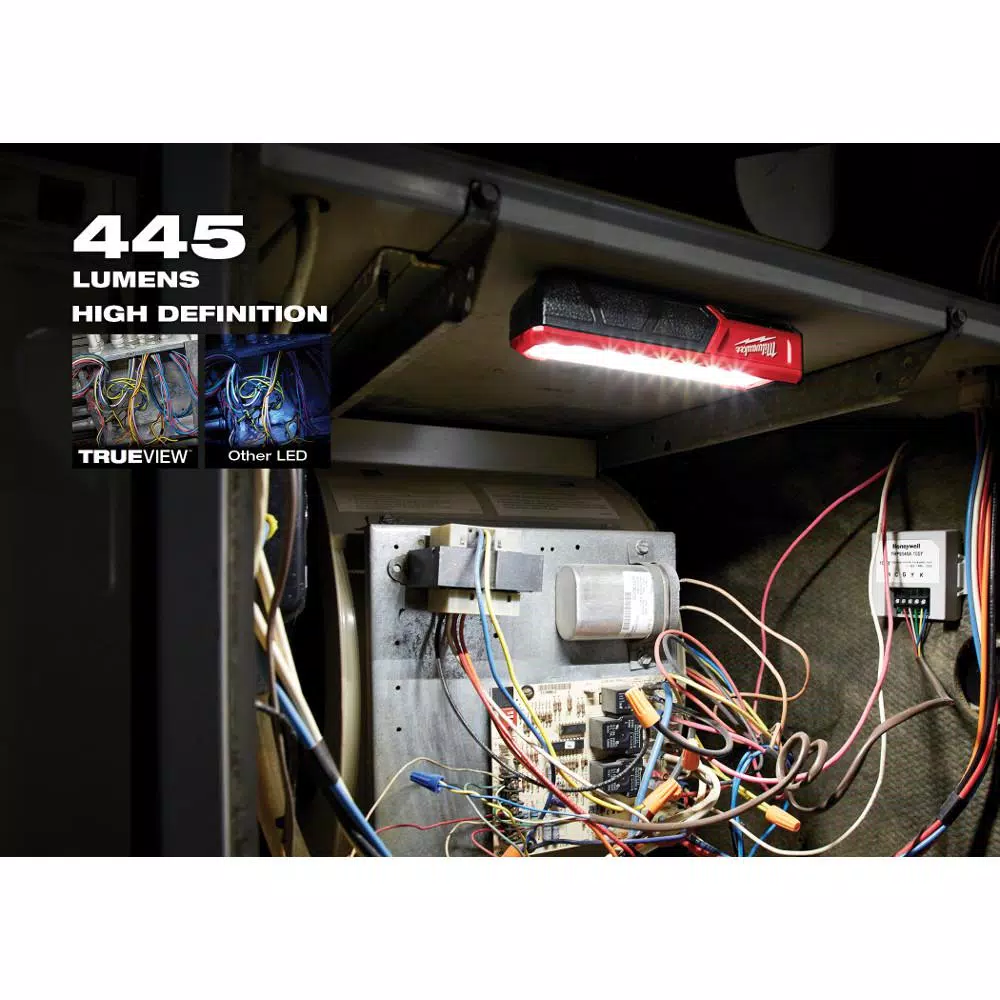 STICK IT. WEAR IT. CARRY IT. Powered by REDLITHIUM USB, the Milwaukee USB Rechargeable ROVER Pocket Flood Light delivers 445 Lumens of TRUEVIEW High Definition output and is capable of all-day runtime, over 2,000 recharges and 3X faster charging via USB. Stick, clip and carry it anywhere with its dual magnet clip, perfect for mechanical, electrical, H/VAC-R, MRO and automotive trades. The light is impact and chemical resistant to withstand harsh environments. With 2 light output modes users can maximize brightness or extend runtime with up-to 11-hours of light on a single charge. The REDLITHIUM USB Battery can be recharged in the light via Micro USB or swapped out with additional REDLITHIUM USB Batteries for virtually no downtime. The Milwaukee USB Rechargeable ROVER Pocket Flood Light is covered by a limited lifetime warranty.