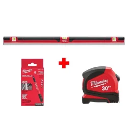 - Includes: one 48 in. concrete screed level, one 30 ft. compact tape measure and 12 inkzall black ultra fine point markers