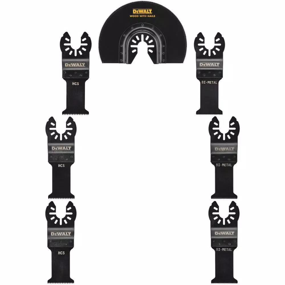 Power through a variety of demanding cutting applications including wood with nails and drywall with the DEWALT Cutting Blades. The set includes 3 different oscillating attachments. Each blade is equipped with UNIVERSAL FITMENT for adapter-free use with all major oscillating tool brands.