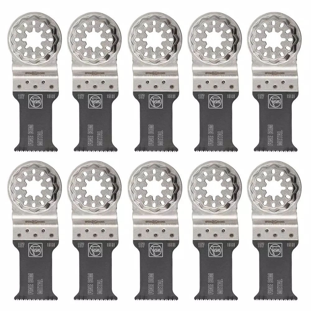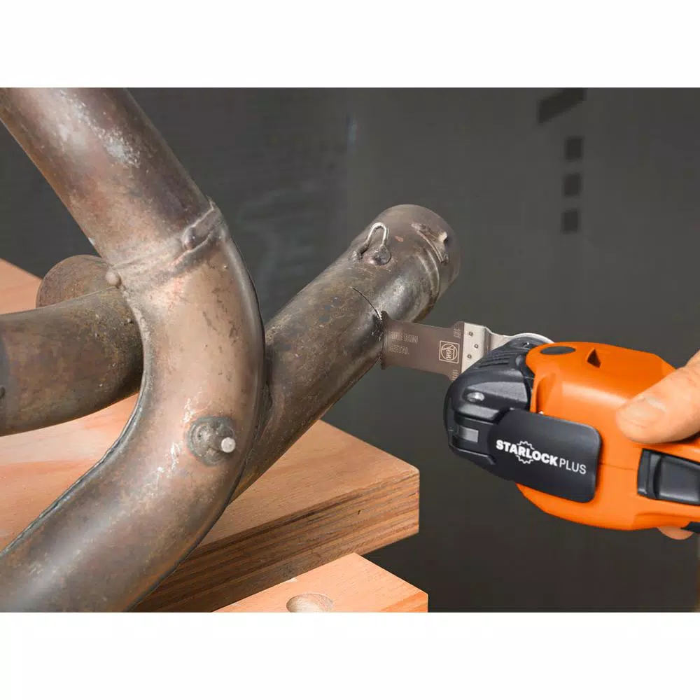 The FEIN Starlock Fine E-Cut 157 saw blade maximizes performance for the most efficient work progress possible. The Fine E-Cut 157 saw blade has good cutting speed and Bimetal teeth precise cuts in sheet metal up to 2 mm, aluminum profiles, copper pipes, GFRP, and other hard plastics. Featuring the FEIN Starlock mounting system, the Fine E-Cut 157 saw blade fits every popular multifunction tool on the market. Even if you don’t own a FEIN oscillating multi-tool, you can affordably upgrade output by choosing a FEIN Starlock blade.