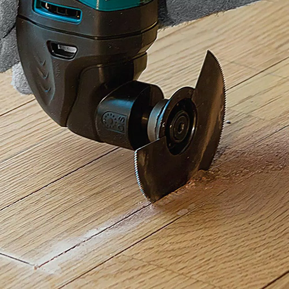 The Makita 3-1/4 in. Starlock Round Saw Blade is engineered for cutting hard and soft wood, soft metals, MDF, PVC, and drywall. It is ideal for plunge cuts into drywall or plasterboard when installing electrical outlets. They can cut crown molding, case, base, wood flooring and wood trim. The Bi-metal construction and titanium tooth coating provide increased performance and longer accessory life. The Starlock Interface is compatible with most oscillating multi-tools (sold separately).