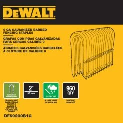 Fastening Tools DEWALT 1.75 In. X 9-Gauge Galvanized Barbed Paper Tape Fencing Staples (960 Per Box)