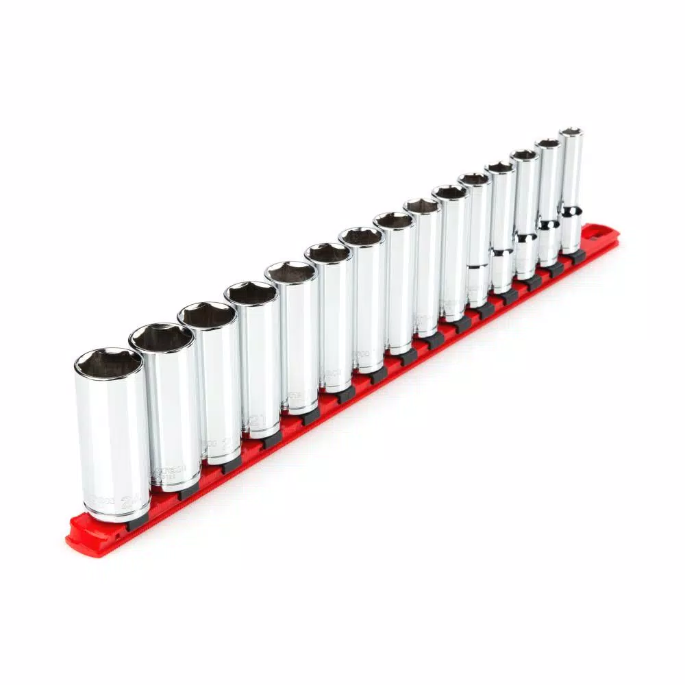 - 15-piece 1/2 in. drive deep 6-point sockets: 10 mm, 11 mm, 12 mm, 13 mm, 14 mm, 15 mm, 16 mm, 17 mm, 18 mm, 19 mm, 20 mm, 21 mm, 22 mm, 23 mm, 24 mm