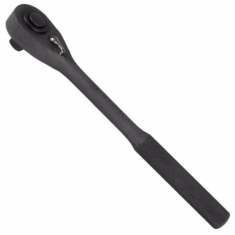 Ratchet handles are used together with sockets, the ratchet handle is the lever arm that lets you apply torque using the socket attached to it. The reversible mechanism lets the socket turn in both directions for tightening and loosening. The design and dimensions of 1/2 in. ratchet handles are ideal for automotive maintenance and general mechanic work , in situations where higher torque is required and there is more room for work. The maximum recommended torque for a 1/2 in. ratchet handle is 4500 lbs. For FOD (Foreign Object Debris) applications, the use of sockets with a blue finish is recommended so that no coating will flake off.