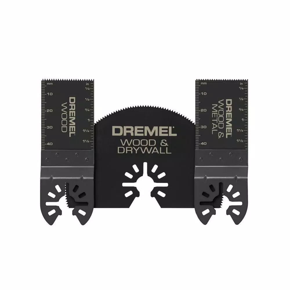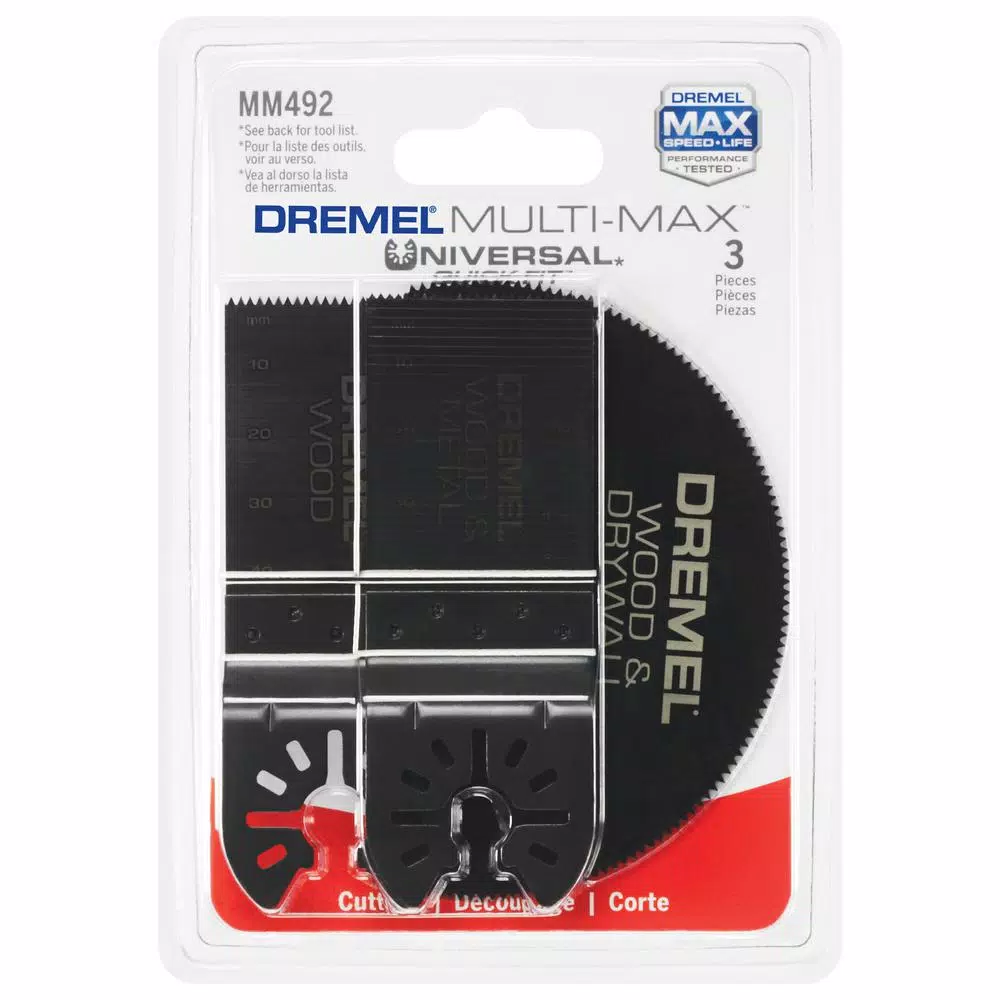 The 3-Piece cutting assortment pack includes the MM482 wood and metal flush cut blade, MM480 wood flush cut blade and MM450 wood and drywall saw blade, allowing users to cut through a large variety of materials such as, non-ferrous metals, woods, plastics, drywall and other soft materials. Each blade is newly designed, utilizing Dremel’s universal Quick Fit interface for compatibility with most Oscillating Tool on the market.