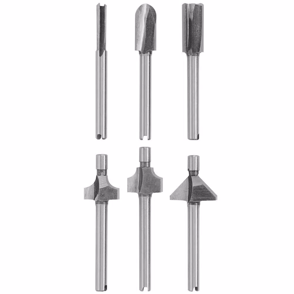 - Set of 6 high-speed router bits made from high-grade steel
