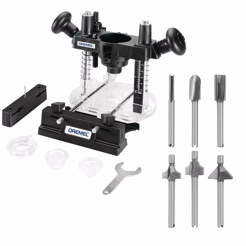 With the 335-01 turn your corded Dremel rotary tool into a compact plunge router – and cut perfect decorative edges, straight slots or rout freehand. Plunge feature lets you start your cut in the middle of your workpiece. Ideal for woodworking, making inlays in furniture, musical instruments and wood crafts The 692 is a set of 6 high-speed router bits made from high-grade steel and packaged in a reusable plastic case. For use with the 335 Plunge Router and 231 Shaper/Router attachments.