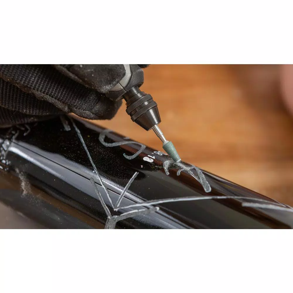 Perform an abundance of polishing, engraving, cutting, carving, sanding, grinding and cleaning tasks with this 108-Piece All-Purpose Accessory Kit from Dremel. Stocked with widely used attachments and accessories for a separately sold rotary tool, you’ll find more uses for these versatile instruments than you ever anticipated. The included storage case allows organizational arrangement of all the specialized devices, including aluminum oxide grinding stones, mandrels, cutoff wheels, felt polishing wheels, sandpaper discs, dressing stone, sanding bands, polishing compound, silicon carbide grinding stones and a wrench.