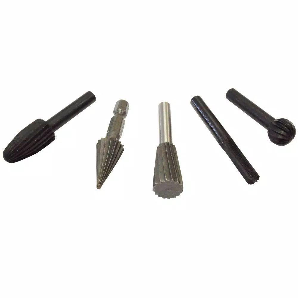 Contains 1 rounded edge, 1 square edge, 1 pear shaped edge, 1 tapered rotary file(carded), and 1 beveled pointed rotary file(carded). Hardened alloy steel allows for durability and longevity.