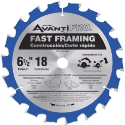 The Avanti Pro 6-1/2 in. x 18 Tooth Fast-Framing Circular Saw Blade has wide-set teeth designed for cutting softwood, pressure-treated beams and oriented-strand board (OSB). The durable-construction carbide reinforcement extends the life of this blade up to twice that of standard steel blades. It has a thin-kerf edge and friction-reducing rim coating to resist binding and drag. It is designed specifically for professional contractors.