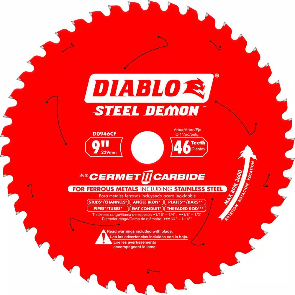 Diablo’s new Steel Demon Cermet blades cut both metal and stainless steel while providing 5x the cutting performance than standard metal cutting blades. By delivering the ultimate metal cutting performance and unmatched value story, this blade is a game changer for metal cutting. This blade features new, exclusive innovation with specially formulated Cermet teeth with a Triple Chip Grind Tooth Design, laser cut blade bodies, anti-vibration technology, and PERMA-SHIELD non-stick coating to deliver precise cuts with no sparks and cool, burr-free edges.