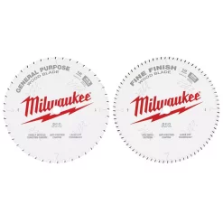 The 12 in. 2-pack item offers an 80-tooth fine finish blade as well as a 44-tooth general purpose blade. An anti-friction coating keeps the blade cool while cutting and resists corrosion and gumming. Laser cutting technology creates the blade from 100% sheet steel to ensure a stable blade that increases cutting accuracy. 12 in. blades are ring tensioned to further stabilize the blade. Laser cut vibration slots minimize wobble and warping during use. A thin kerf design delivers faster cuts as well as more cuts per charge when using a cordless tool. The 80-tooth fine finish blades ATB tooth pattern minimizes tearout in the cut material.