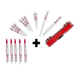 The 15-Piece SAWZALL Reciprocating Saw Blade Set from Milwaukee offers a varied assortment of wood and metal cutting SAWZALL blades for a wide range of applications. Blades feature an optimized tooth design that provide a longer life over standard bi-metal blades. Best of all, take your blades with you with a durable case for convenient on-the-go blade storage. AX SAWZALL Blades have been engineered with Milwaukee NAIL GUARD technology to deliver you 2X faster cuts, up to 5X longer life and greatest tooth durability of any wood demolition blades on the market. Our innovative FANG TIP bites into wood on first contact for the quickest plunge cuts into both wood and nail-embedded wood for increased versatility.
