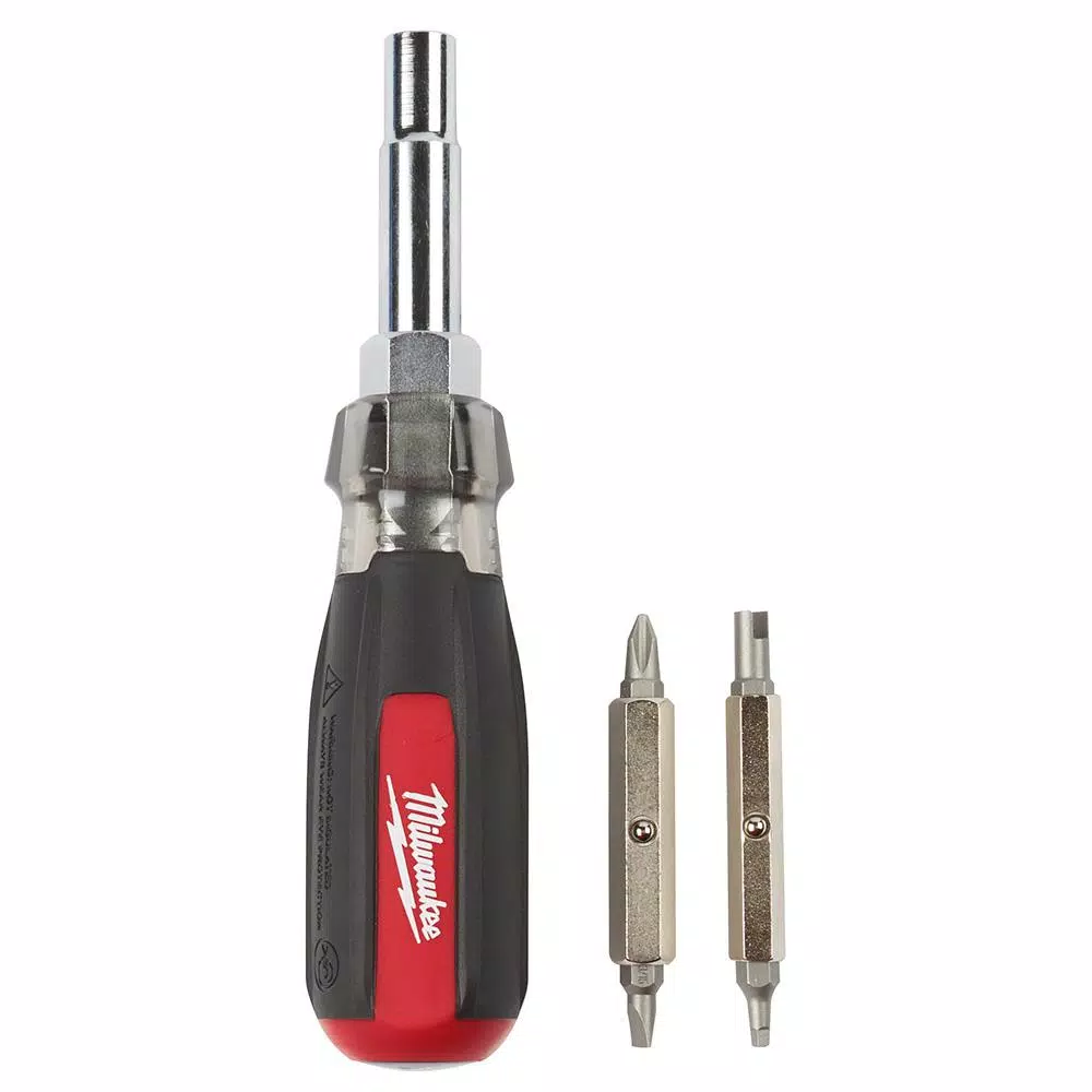 The Milwaukee 13-in-1 Cushion Grip Screwdriver with Schrader bit features 13 unique functions, ultimately reducing the number of tools a user must carry. The 13-in-1 screwdriver includes the 8 bits and 4 nut drivers most requested by HVAC professionals. The bit prevents bit wear from hardened screws and extends bit life when fastening specialty screws found in electrical boxes, conduit couplers, outlets and other common job site fixtures. The tri-material cushion grip handle offers best-in-class durability and will not peel Covered by Milwaukee’s limited lifetime warranty.
