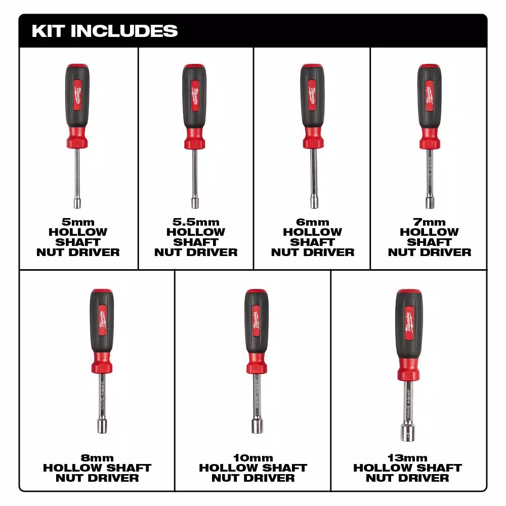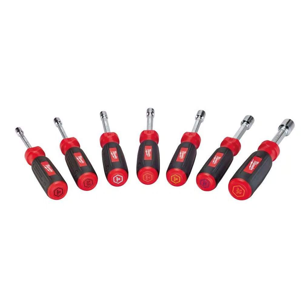 Milwaukee Nut Drivers feature universal driver heads which fit 4x more fasteners including: Square, Hex, 12 point and Spline. Designed for maximum durability the Wrench Ready hex steel shanks are forged and chrome plated. Milwaukee Nut Drivers are designed for the jobsite and include Milwaukee’s Limited Lifetime Warranty.