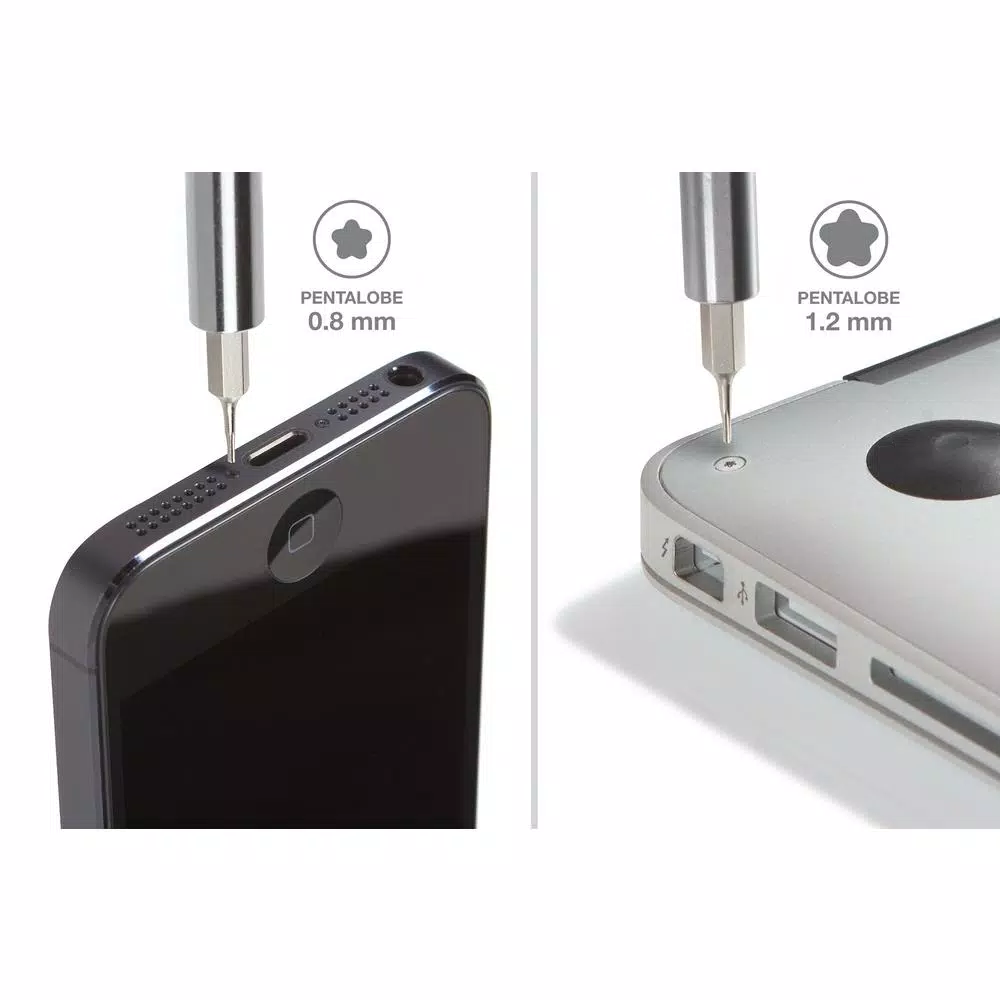 - 2-piece pentalobe bits: 0.8, 1.2 mm