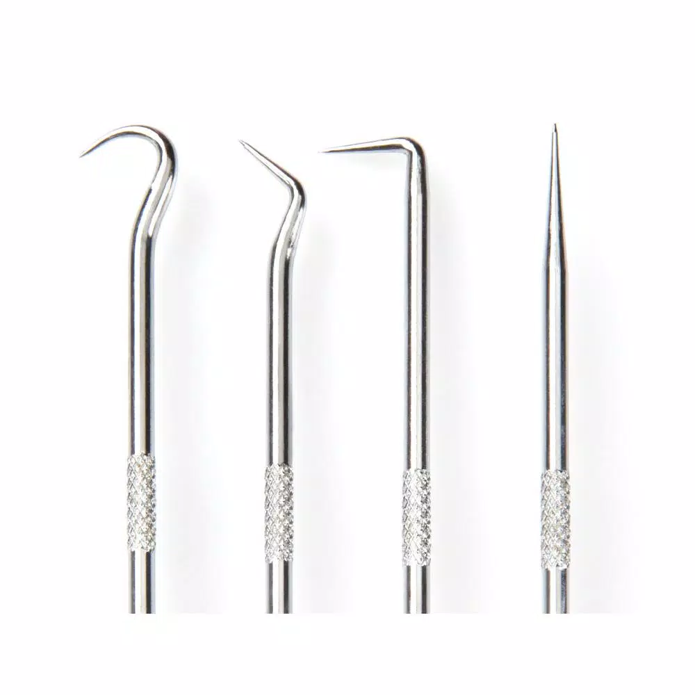 Precisely probe, pierce, pry, pull, and position small parts in tight spaces with the TEKTON 4-pc. Mini Pick and Hook Set. Little, lightweight, and with ultra-fine tips, these versatile tools are indispensable for building, assembling, and repairing electronics, computers, models, toys, appliances, and machinery. Strong and slim, the shafts are made from hardened steel that resists bending under stress. Soft and deeply textured, the handle grips offer a comfortable, nonslip hold. A knurled section on each shaft gives an extra measure of fingertip control and maneuverability.