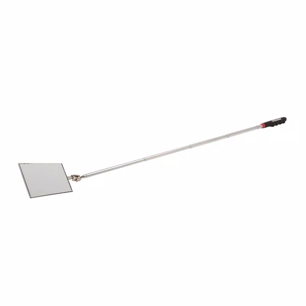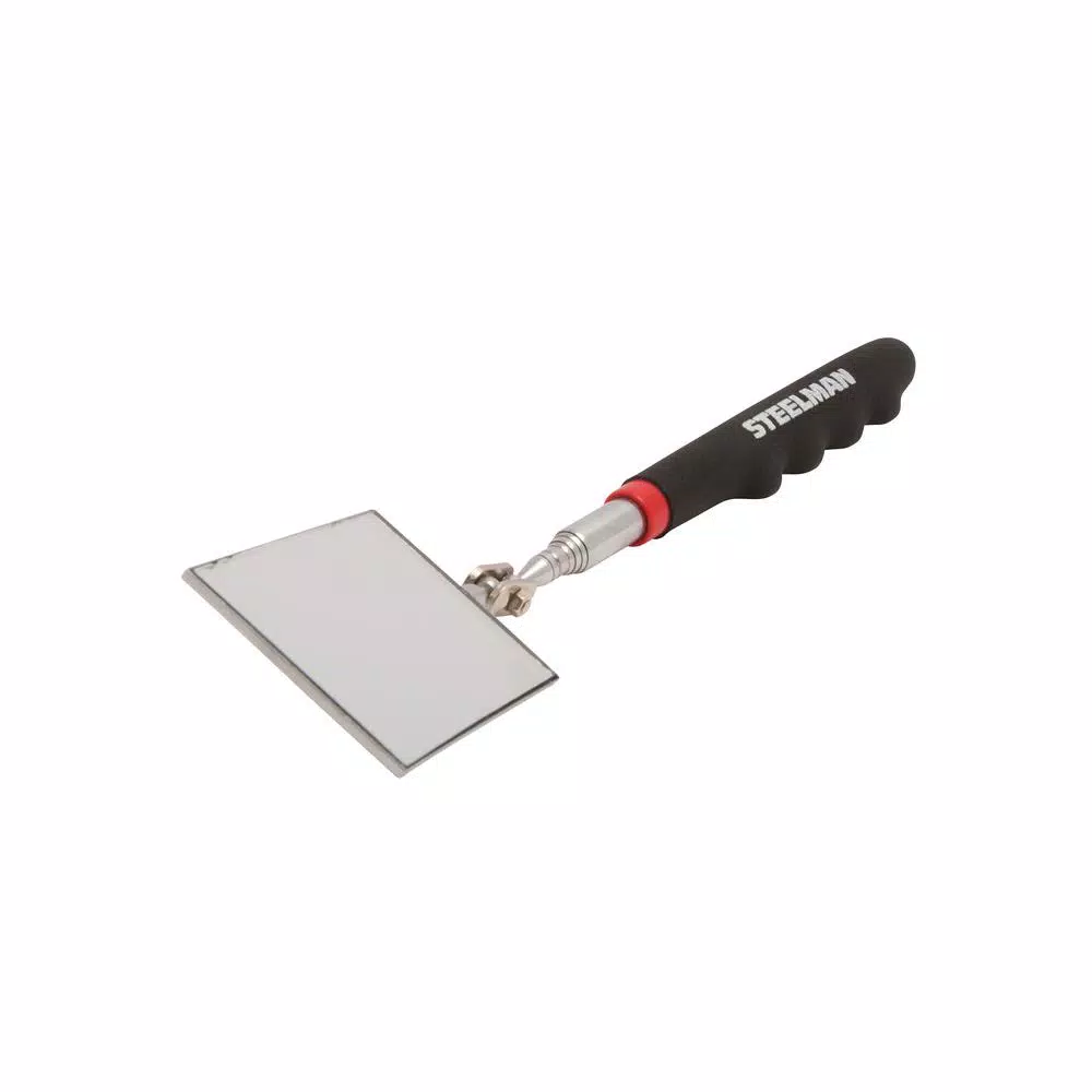 The Steelman 41817 30 in. Telescoping 2 in. x 3.5 in. Inspection Mirror is the ideal tool for when you need to look into tight and recessed areas. With the mirror unfolded the tool is a short 7 in. L that can then extend out to 30 in. or anything in between. The double-ball articulated mirror is rectangular and measures 2 in. W x 3.5 in. L and can swivel 360° to allow you to look at any angle. This enables you to easily perform inspections on HVAC systems, automotive engine compartments and undercarriages, not to mention using it around the house to find things under beds, behind bookcases, and other hard-to-see places. When done this durable, telescoping steel tool collapses and folds down to 7 in. in size and can be easily stowed away until it is once more needed.