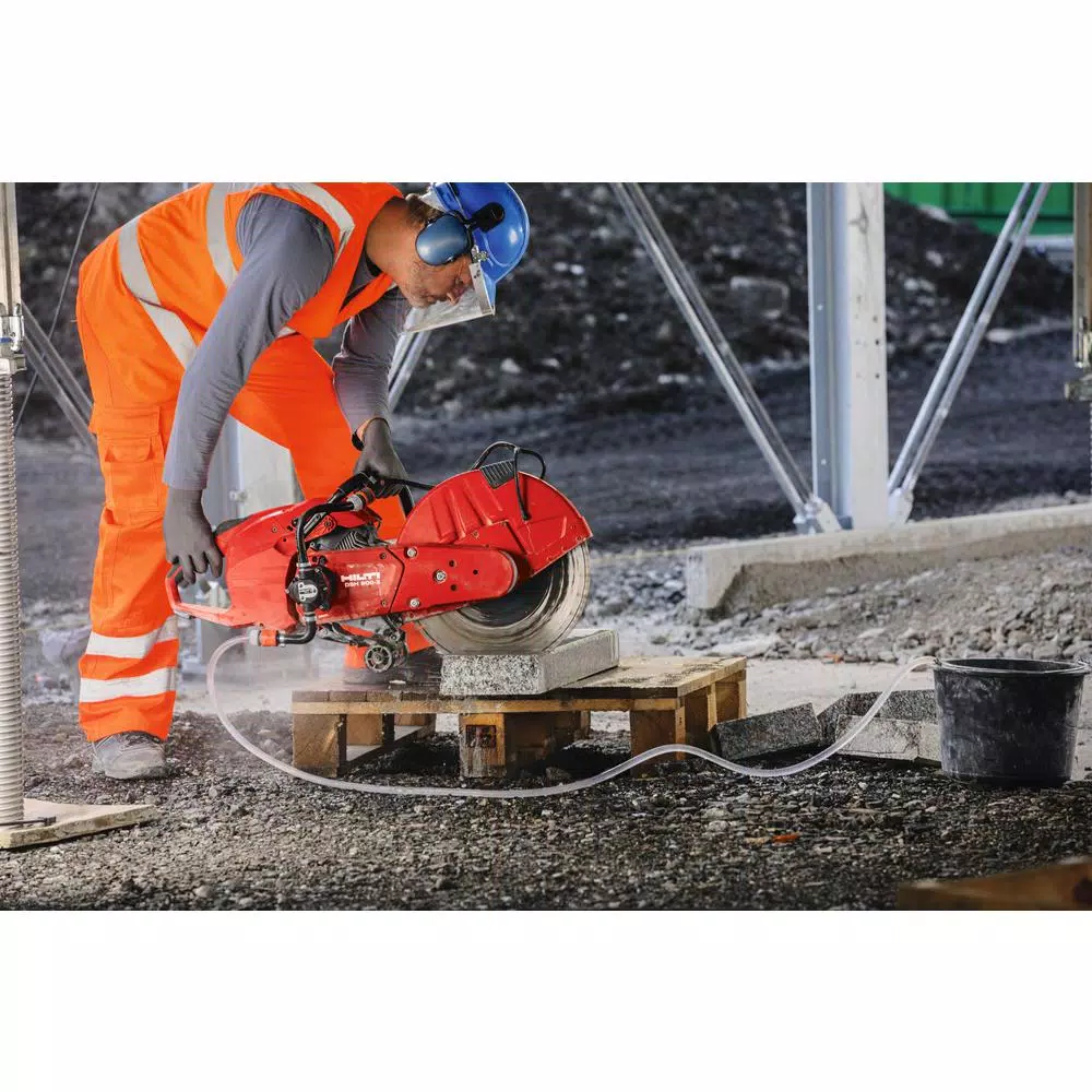 The Hilti DSH-P helps you comply with the ever-more stringent dust control regulations. When a pressurized water source is hard to come by you bring the Hilti integrated water pump DSH-P to the job. Simply fill-up a bucket of water or use another static water source and attach a DSH-P integrated water pump system to your Hilti DSH 900-X to create a virtually dustless job site, wherever the job site may be.