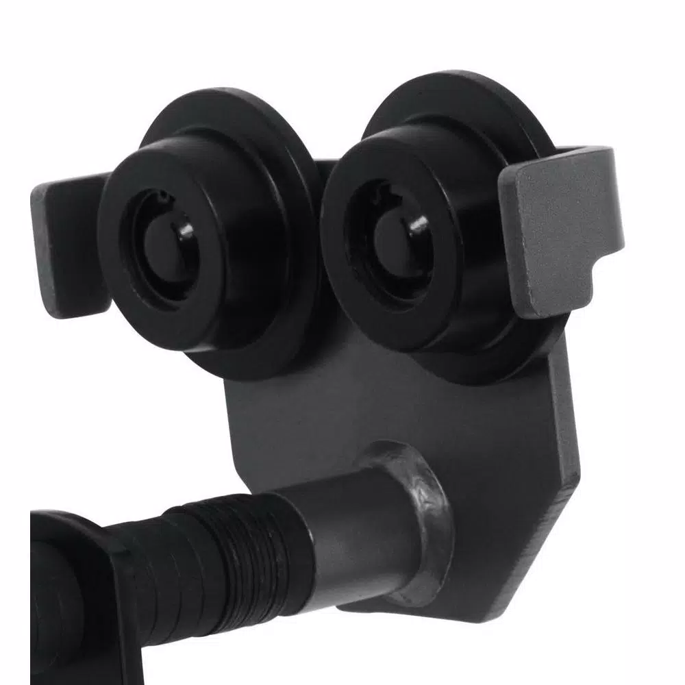 - Easily adjustable to wide-flange H-beams, standard I-beams or curved track with the included spacer washers