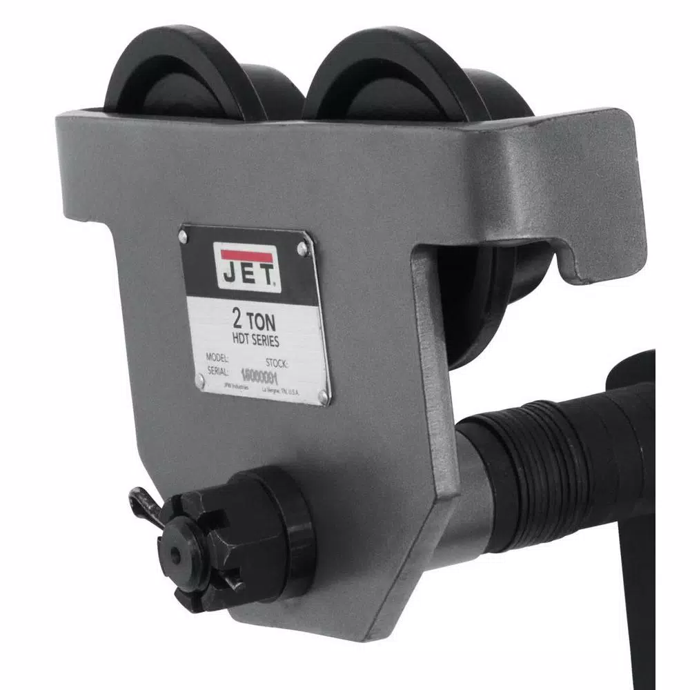 JET HDT Series manual trolleys are available in capacities from 1/2-Ton to 5-Ton. They are designed for low maintenance, trouble free use on wide flange H-beams, standard I-beams or curved track. Each JET Manual Trolley conforms to OSHA regulations and ANSI/ASME standards.