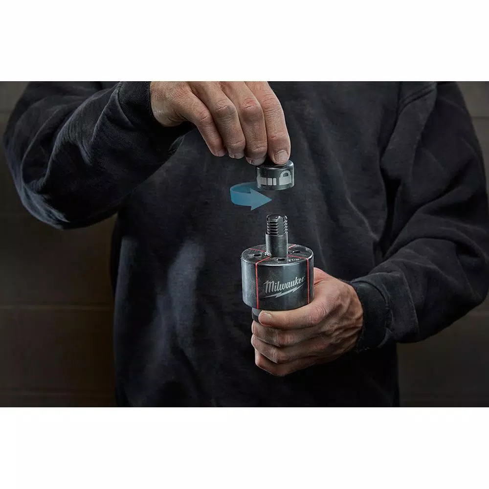 The M18 10T and 6T Knockout allow users to align the punches and dies without the awkwardness of balancing the tool. Reducing the tedious steps of hole making, improving the speed of the process and limiting the fatigue of the user. The Exact Rapid Reset Draw Studs simplifies the process of punching repetitive holes by removing the tedious step of unthreading the punch from the draw stud. A 1/4 turn releases the ball pull, dump the slug and setting up for the next hole is as simple as a 1/4 turn to lock the ball pull back on. Milwaukee continues to innovate, delivering the Easiest Way to Punch.