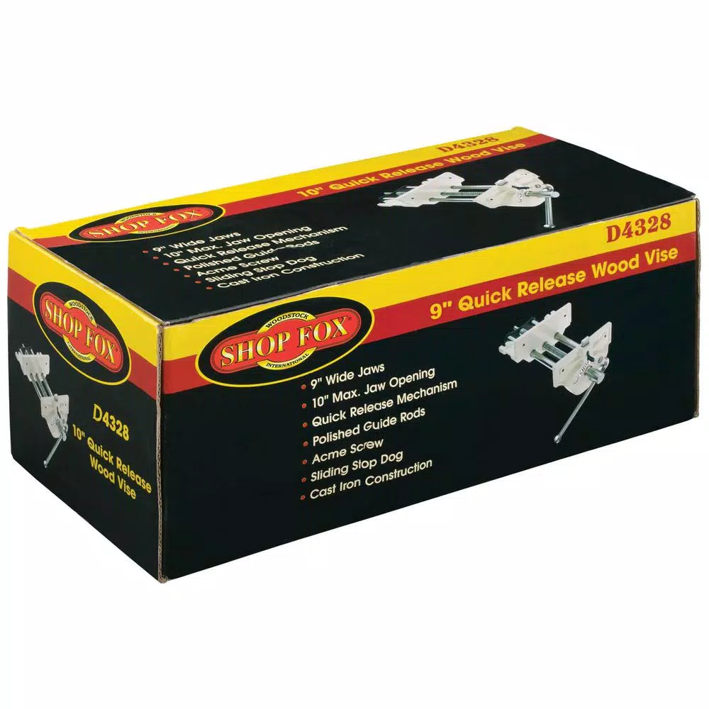 This heavy cast-iron wood vise with polished guide rods features a quick release lever that disengages the screw. Fast and efficient material engagement. It also features sliding dogs for securing long workpieces to the bench, which conveniently retract out of the way when not in use.