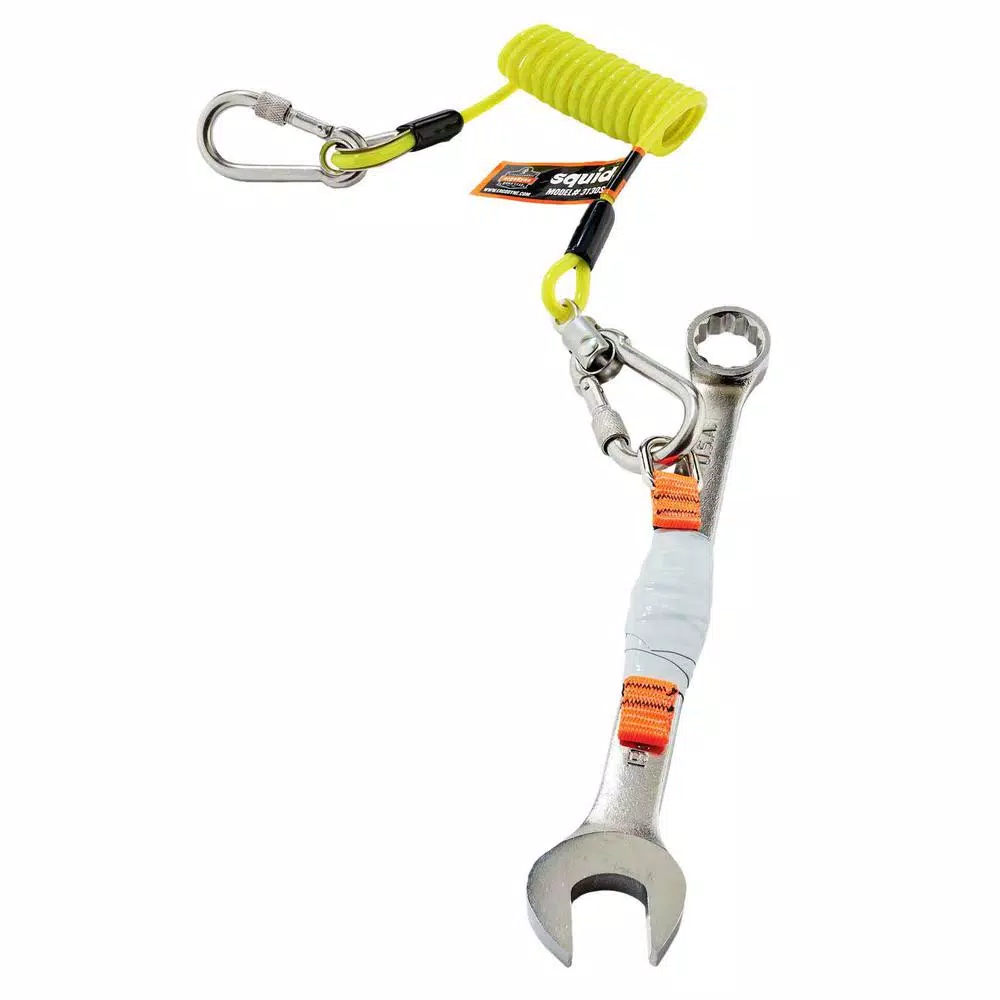 The Squids 3180 Tool Tethering Kit includes a 3130S Coil Lanyard, a 12 ft. (3.7 m) roll of 3755 Self-Adhering Tape Trap and six 3700 Web Tool Tails. This kit allows you to tether up to six 2 lbs. (0.9 kg) tools.