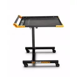 The GearWrench Mobile Work Table is ideal for any garage or shop for quick and easy access to the tools and parts you’re working with. The 20 in. x 30 in. tray table adjusts to any height between 35 in. and 48 in. for maximum convenience. Built with durable 18-gauge steel, the top load tests to 125 lbs. at the center of the tray. The tray table also includes compartments to keep small items safe while being transported. The 3 in. casters allow you to move the mobile work table around the entire shop with ease. The GearWrench mobile work table allows you to handle any job with your tools within easy reach.