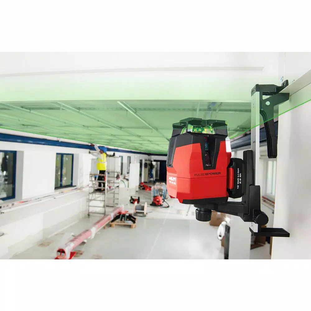 The Hilti Multi-line lasers are ideal for plumbing, leveling, aligning and squaring. The PM-30 is self-leveling to within typically approximately. 4.0 in. all directions. Self-leveling time is about 3-seconds. Use the PMA 90 magnetic bracket for walls, ceiling and transferring reference heights.
