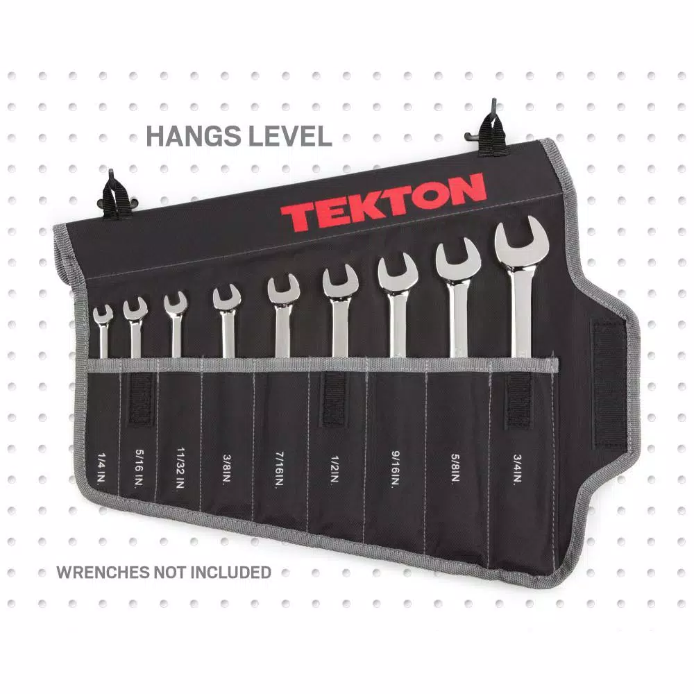 - Holds 9 combination wrenches (not included)