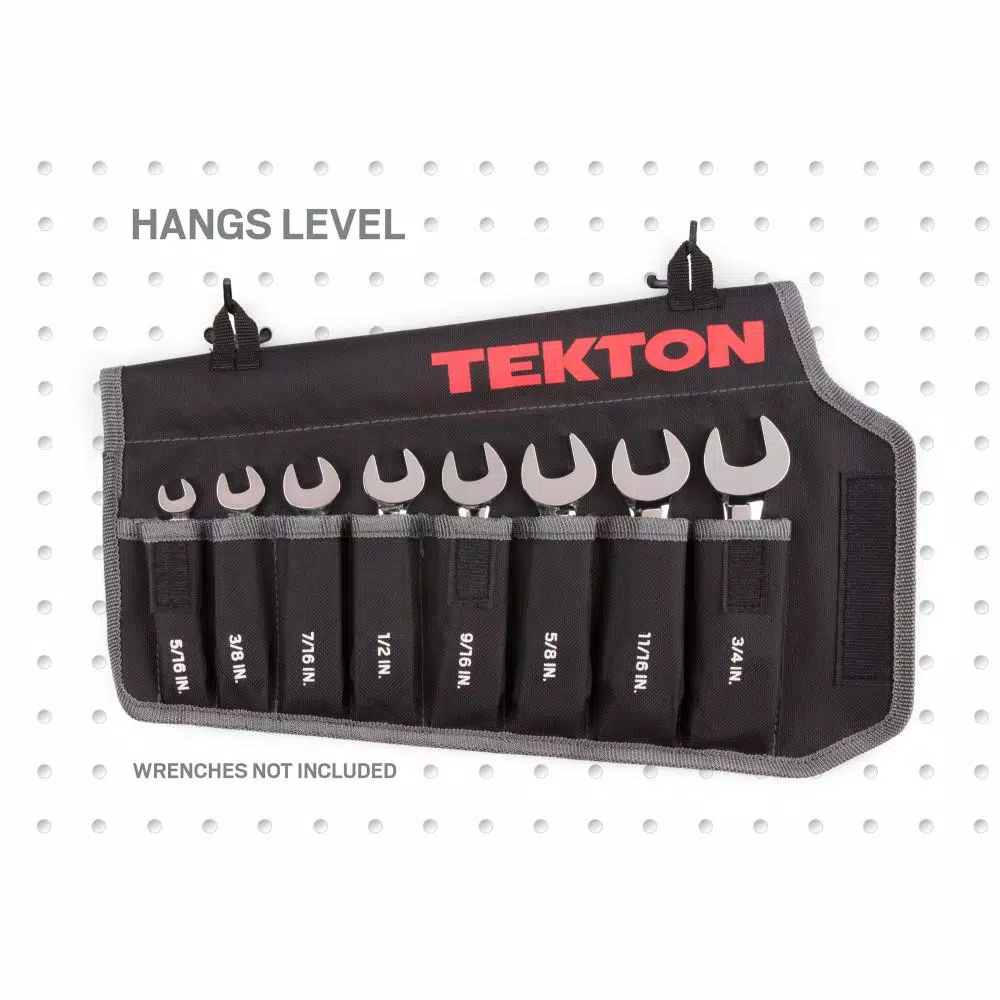 Carry your combination wrenches anywhere in a roll-up pouch that keeps them neatly organized in individual pockets and secured under a tailored cover that prevents them from sliding out the end. Sewn-on hanging loops allow the pouch to be suspended from tool hooks. Clear printed size markings ensure you’re never stuck searching for the right wrench.